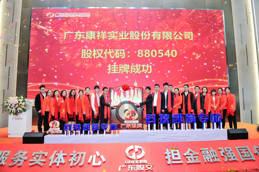 2021年3月23日上午,伴隨著響亮的敲鑼聲,廣東康祥實業(yè)股份有限公司(股權(quán)代碼:880540)在廣東股權(quán)交易中心標準板成功掛牌,標志著廣東康祥在深耕行業(yè)同時,正式進入資本市場!